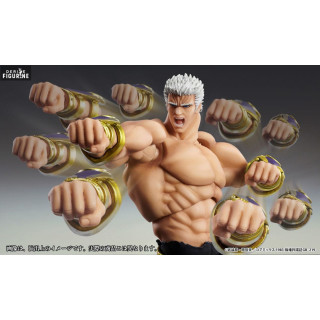 The paintwork on this figure is also remarkable, with vibrant colors and subtle shading that add depth and realism. The details of the armor, with its golden patterns and red gems, are faithfully reproduced, emphasizing Raoh's royal status and power. The different facial expressions included allow you to capture all the rage and determination of the character.