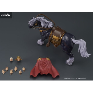 Immerse yourself in the legendary universe of Hokuto no Ken (Fist of the North Star) with this impressive figure of Raoh and his loyal steed, Kukuoh. Representing one of the series' most iconic antagonists, Raoh is depicted here in all his majesty and power, proudly commanding his horse. Dressed in his imposing golden armor and flowing red cape, Raoh perfectly embodies his unyielding determination and desire for conquest. Beside him, Kukuoh, the mighty black stallion adorned with golden details, completes this epic scene, showcasing raw strength and loyalty.