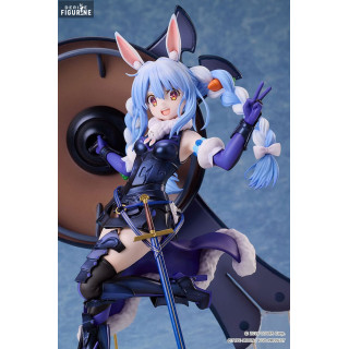 The figure's design showcases Usada Pekora in an energetic pose, ready to defend or attack, all while displaying her usual charm. The vibrant colors, the intricate details of the armor, and the accessories like the shield and sword are finely crafted, demonstrating the exceptional quality of this piece. Whether you're a fan of Hololive, Fate/Grand Order, or simply a collector of high-quality figures, this piece is a must-have addition to any collection.