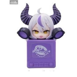 This Hikkake collection figure captures her mischievous energy in a chibi format full of attitude. Popping out of a purple television screen with her arms forward, she seems ready to stir up trouble or demand attention. Her name, “La+ Darknesss,” is printed on the screen in a stylized font, tying in with her dark, space-themed aesthetic.