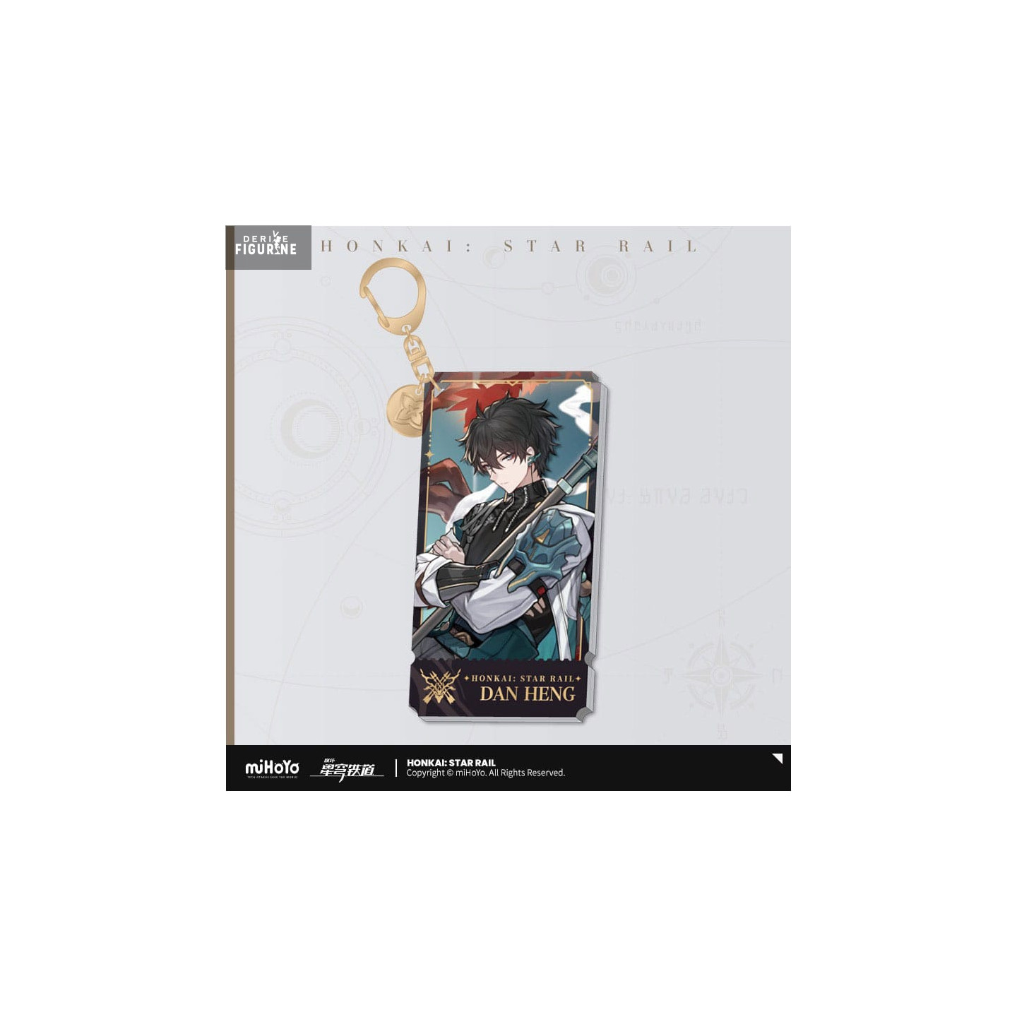Official keychain of Dan Heng in acrylic which measures approximately 9 centimeters high. The manufacturer is MiHoYo.