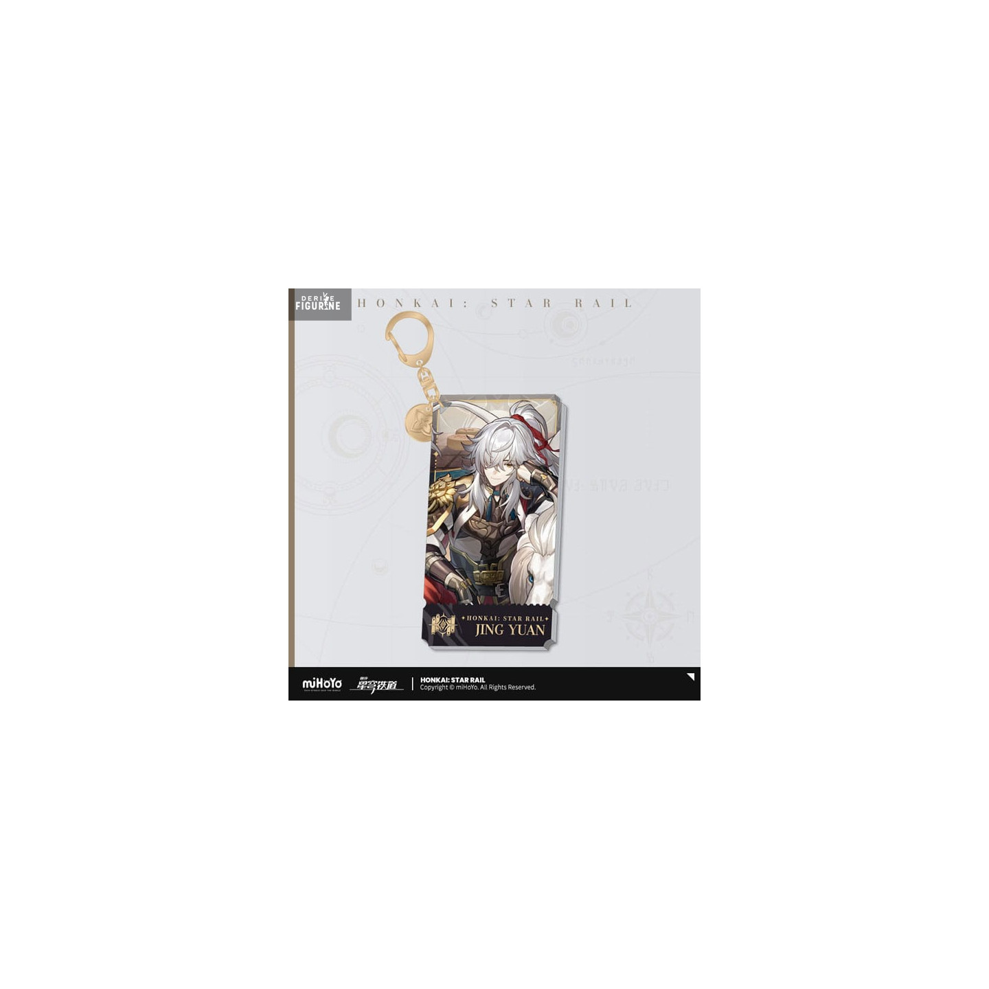 Official keychain of Jing Yuan in acrylic which measures approximately 9 centimeters high. The manufacturer is miHoYo.