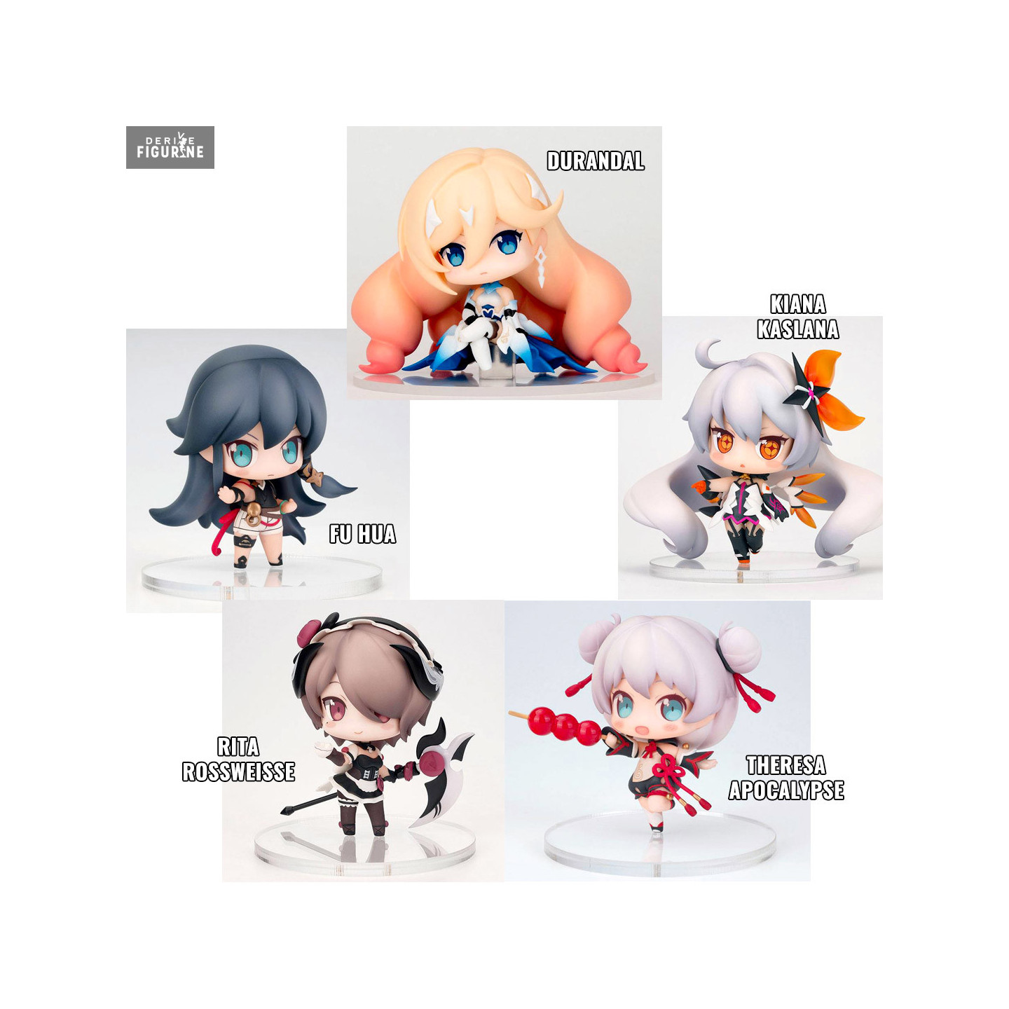 Official figure of your choice between Durandal, Fu Hua, Kiana Kaslana, Rita Rossweisse or Theresa Apocalypse in PVC which measures approximately 10 centimeters high. It is from the Adteroid Series collection. The manufacturer is Mihoyo.