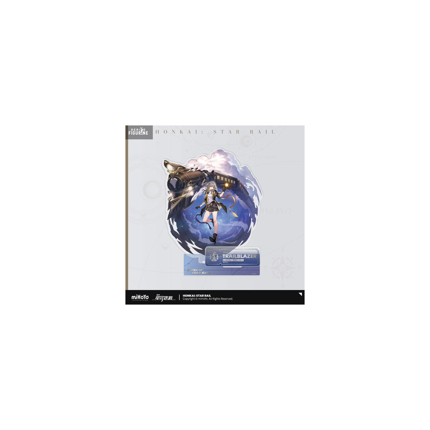 Standing about 16 cm tall, this acrylic figure features clean cuts and vibrant color printing. It stands on a clear base adorned with her name and the train’s emblem. A symbolic and inspiring collectible for any Honkai: Star Rail fan.