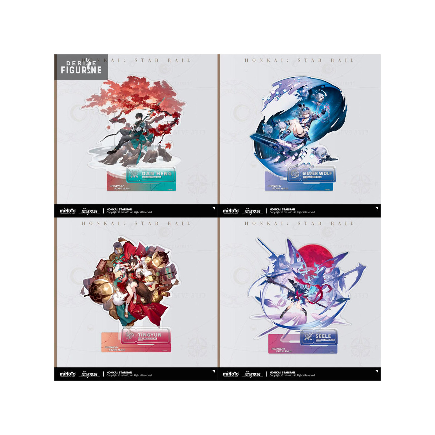 Official figure of your choice between Dan Heng (~ 18 cm), Silver Wolf (~ 17 cm), Tingyun (~ 17 cm) or Seele (~ 20 cm) in acrylic. The manufacturer is MiHoYo.