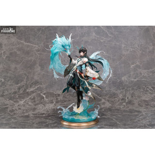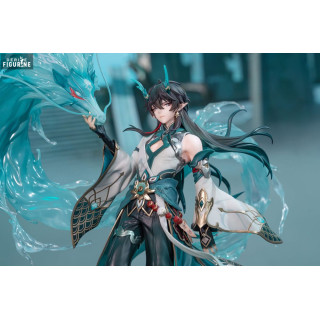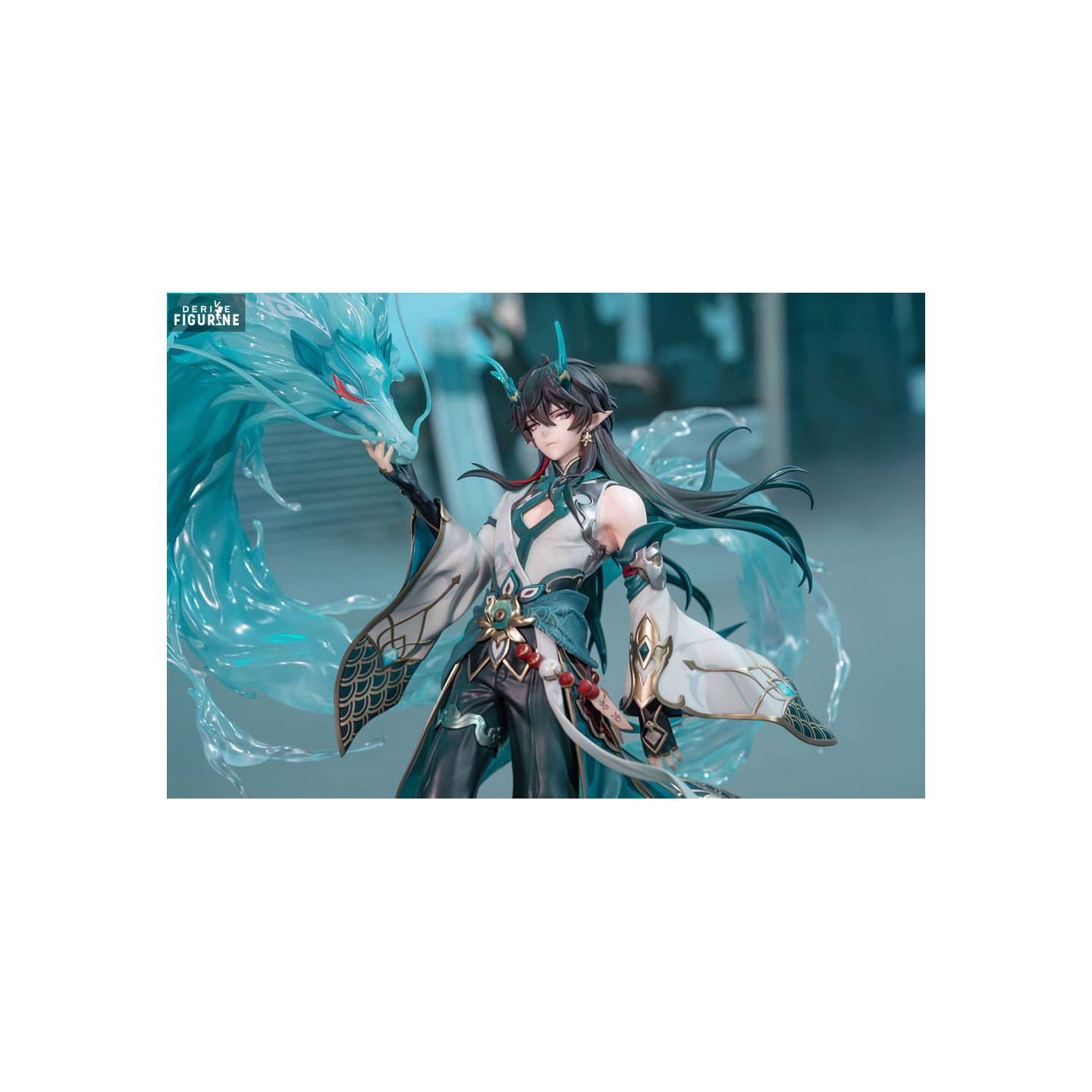 The figure is made from PVC, a material known for its durability and ability to reproduce fine details. With a height of 38 cm at 1/7 scale, this imposing piece is perfect for display on a shelf dedicated to collectible figurines. The base of the figure, as well as the special effects around Dan Heng, are designed to create a dynamic and immersive scene.