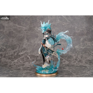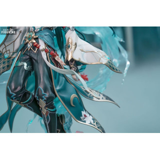 The Dan Heng/Imbibitor Lunae DX Edition figurine is an exceptional piece that stands out for its exquisite details and impeccable finishes. Apex Innovation, known for its know-how and precision, was able to capture the essence of the character with remarkable detail. The blue dragon surrounding Dan Heng appears almost alive, with translucent effects adding an ethereal dimension to the scene. Dan Heng's clothing, adorned with intricate designs and elaborately carved accessories, showcases the exceptional quality of this figurine.