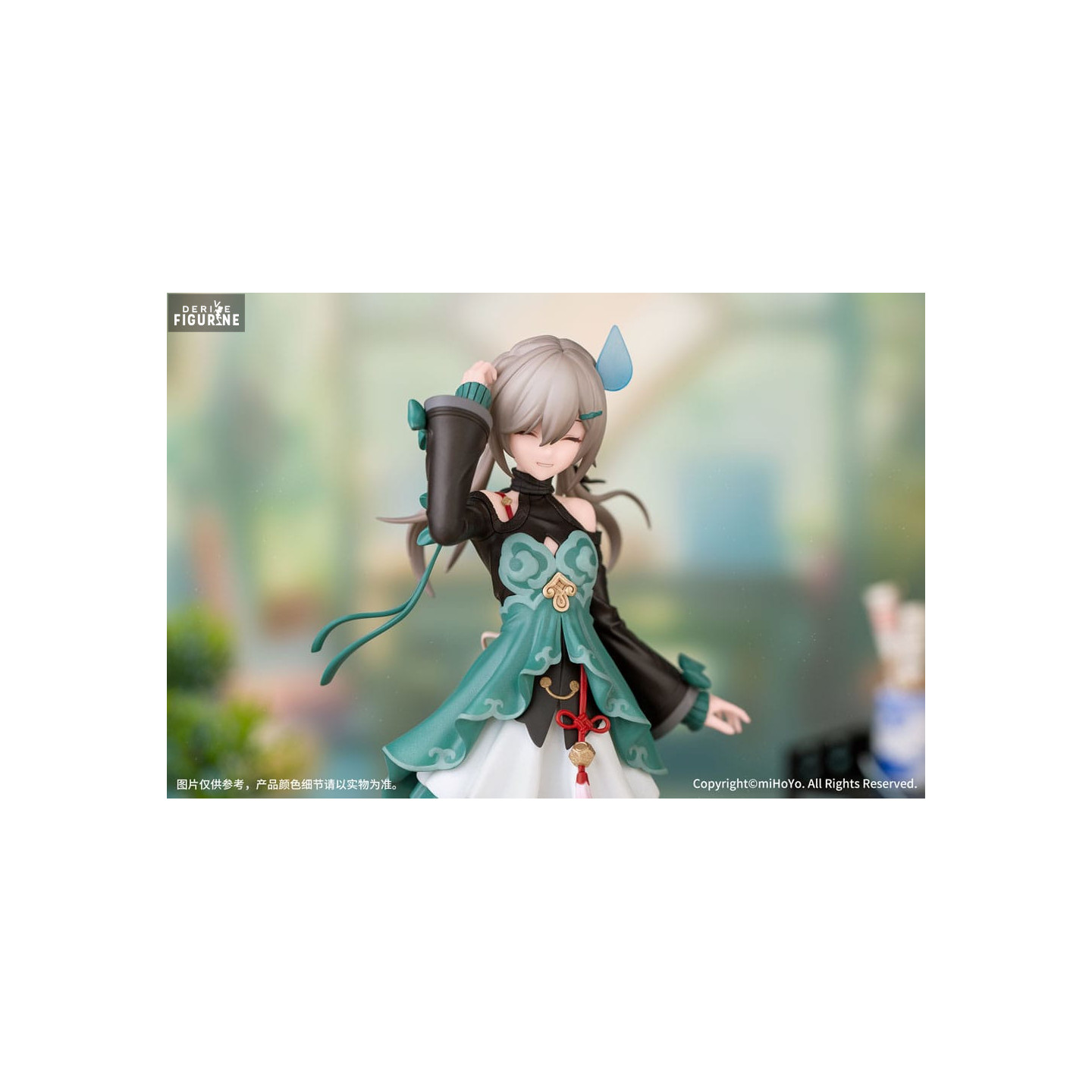 The figure also comes with a decorative base that perfectly complements the set, providing optimal stability while adding an extra touch to the overall aesthetic of the piece. For fans of Honkai: Star Rail or elegant figures, this representation of Qingque is a must-have addition to any collection.