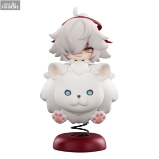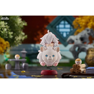 Jing Yuan is one of the charismatic characters from Honkai: Star Rail, known for his enigmatic appearance and calm wisdom. Paired with Mimi, an adorable plush-like creature, this figure represents a duo that is as charming as it is captivating. Jing Yuan, with his silver hair and playful expression, rests comfortably on Mimi's fluffy back, creating an irresistibly sweet scene that melts the hearts of fans.