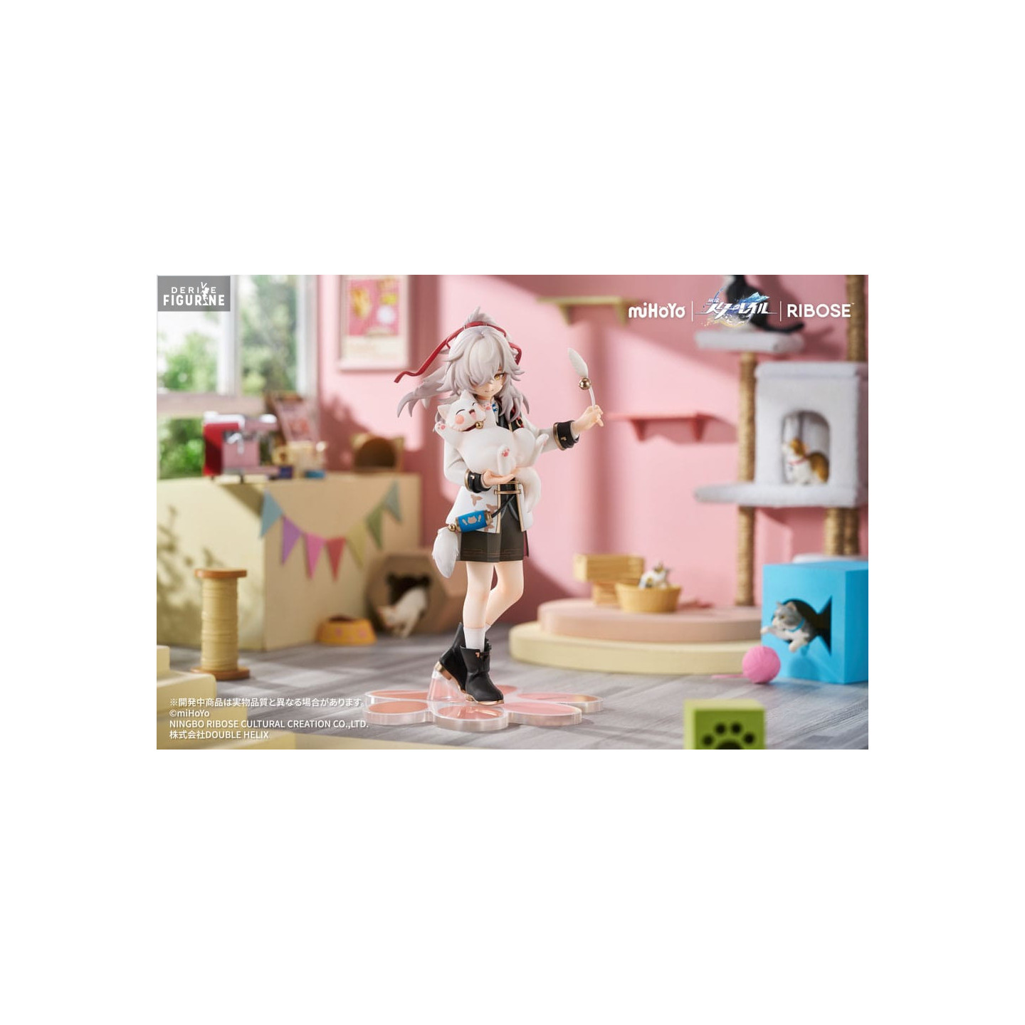The Rise Up Little Cat Series figure captures a rare and heartwarming side of Jing Yuan. Far from battlefields and strategy meetings, it depicts him in a moment of pure tenderness, holding an adorable cat while playing with it using a bell-tipped wand. This scene highlights the warm and caring aspect of the general, offering a delightful contrast to his authoritative persona. Every detail of this PVC figure, standing approximately 20 centimeters tall, is meticulously crafted, from the silver strands of his hair to the delicate posture that reflects the gentle nature of the moment. The flower-shaped base adds a poetic touch, completing the display with elegance.