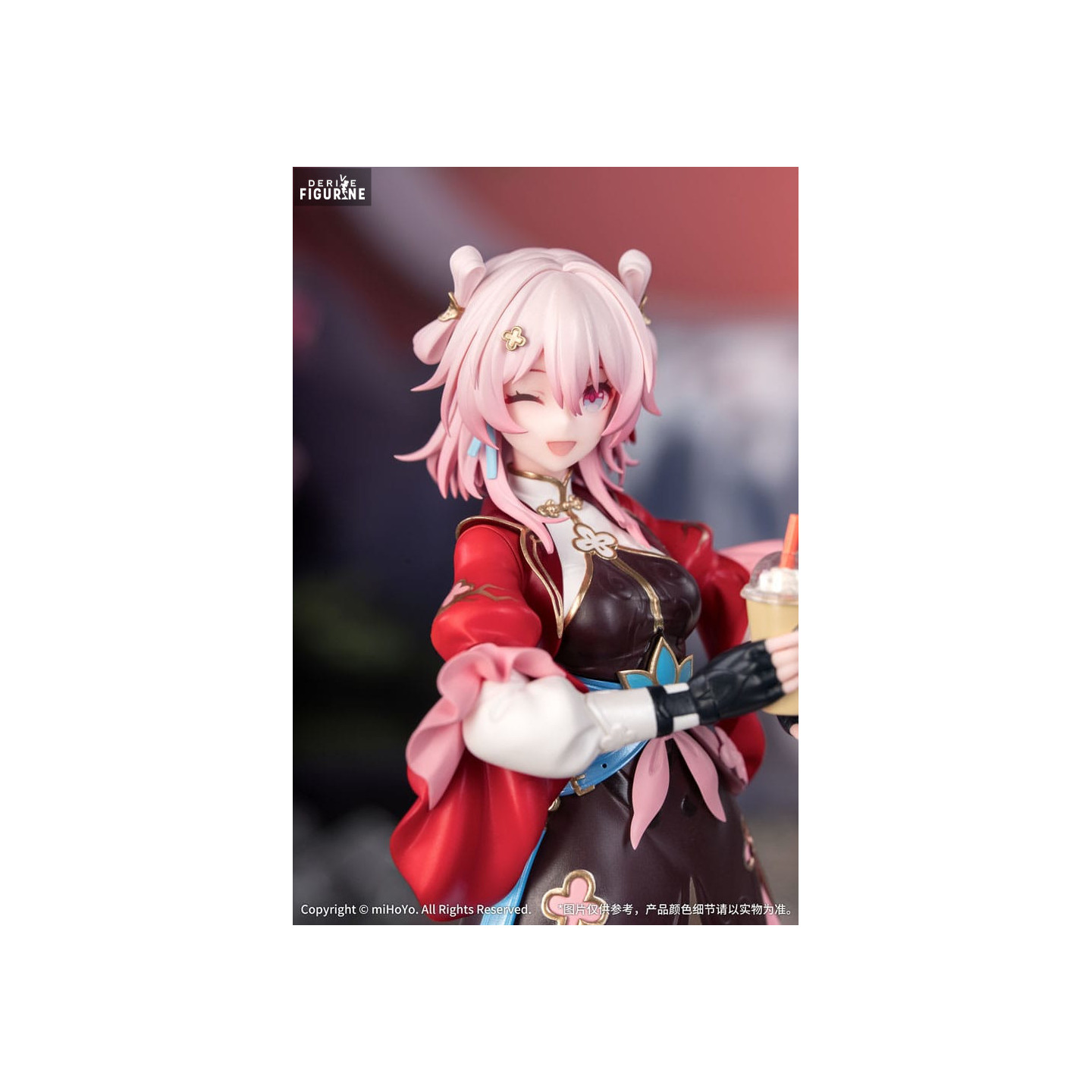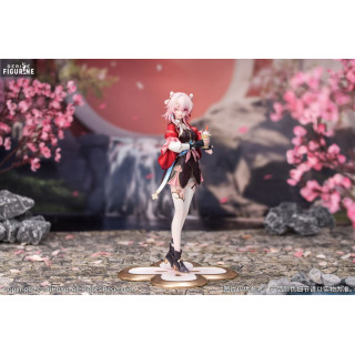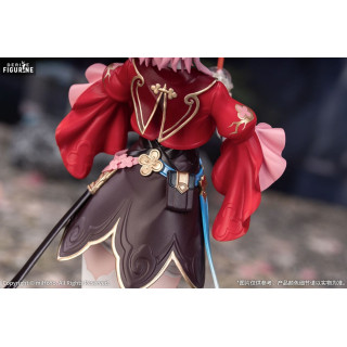 This March 7th - The Hunt figure, part of the Gift+ collection and produced by Myethos, perfectly captures her playful and lively spirit. Dressed in an exquisite outfit blending oriental influences with modern aesthetics, she wears an elegant black dress adorned with golden patterns, accentuated by voluminous red sleeves and intricate details. Her mischievous smile and winking expression add a dynamic touch to this figure. Holding a beverage in one hand, she exudes a carefree and relaxed attitude, contrasting with her pivotal role in the adventure. The floral-shaped base adds a refined and harmonious finish to this stunning collectible. Standing 21 centimeters tall at a 1/8 scale, this PVC figure is a must-have for Honkai: Star Rail fans and collectors of Myethos’ beautifully crafted designs.