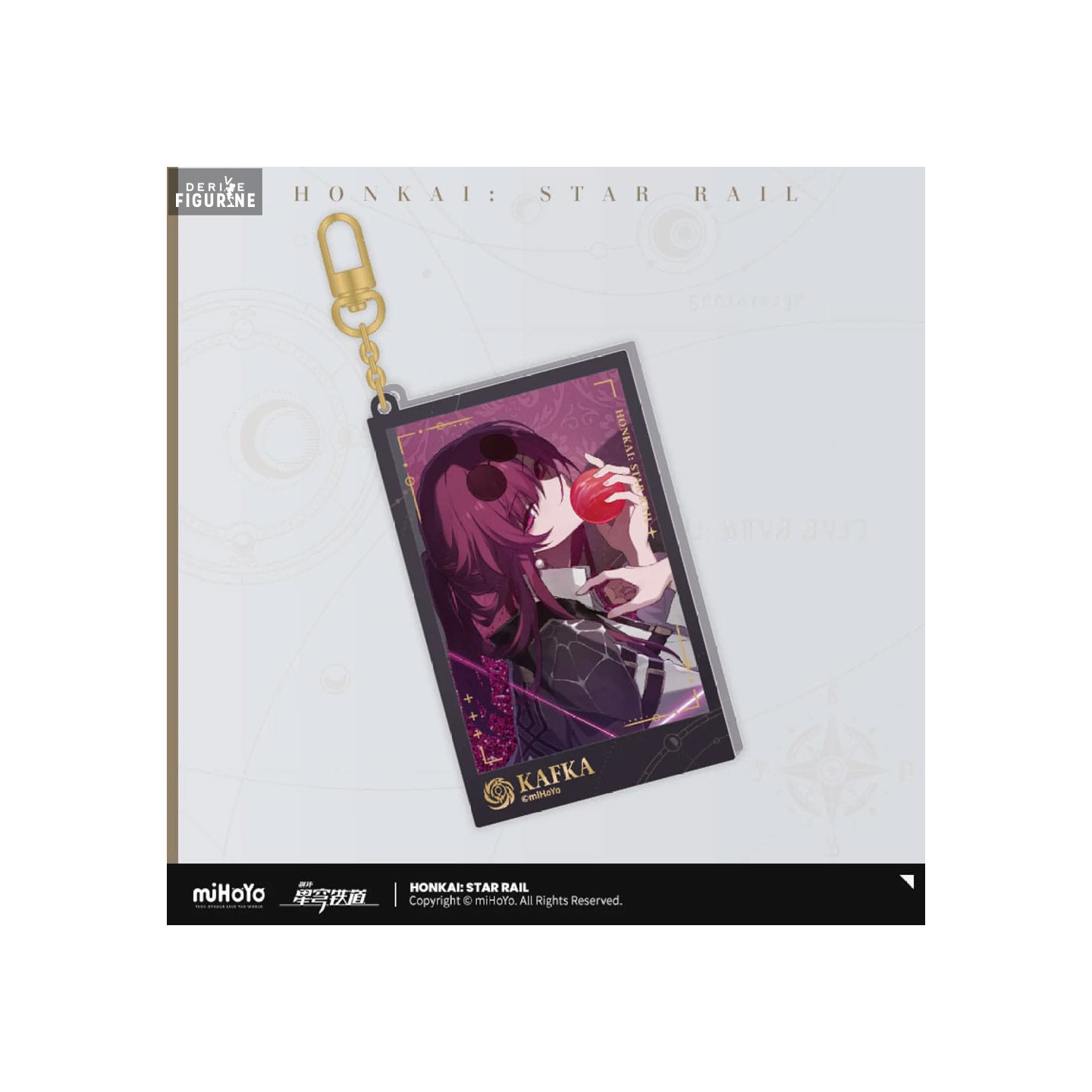 Official keychain of Kafka Glitter in acrylic with glitter which measures approximately 9 centimeters high. The manufacturer is MiHoYo.