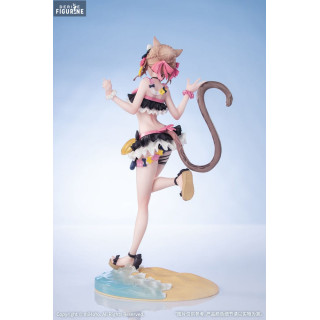 This Pardofelis "Midsummer" figure showcases the character in an irresistibly charming summer outfit. Her feline-inspired swimsuit, featuring black and pink details, enhances her mischievous and adorable look. Her playful expression and bright gaze perfectly reflect her carefree and joyful personality. The sculpting highlights impressive details, including her beautifully adorned hair, cat ears, and her signature tail, which is an iconic feature of the character.