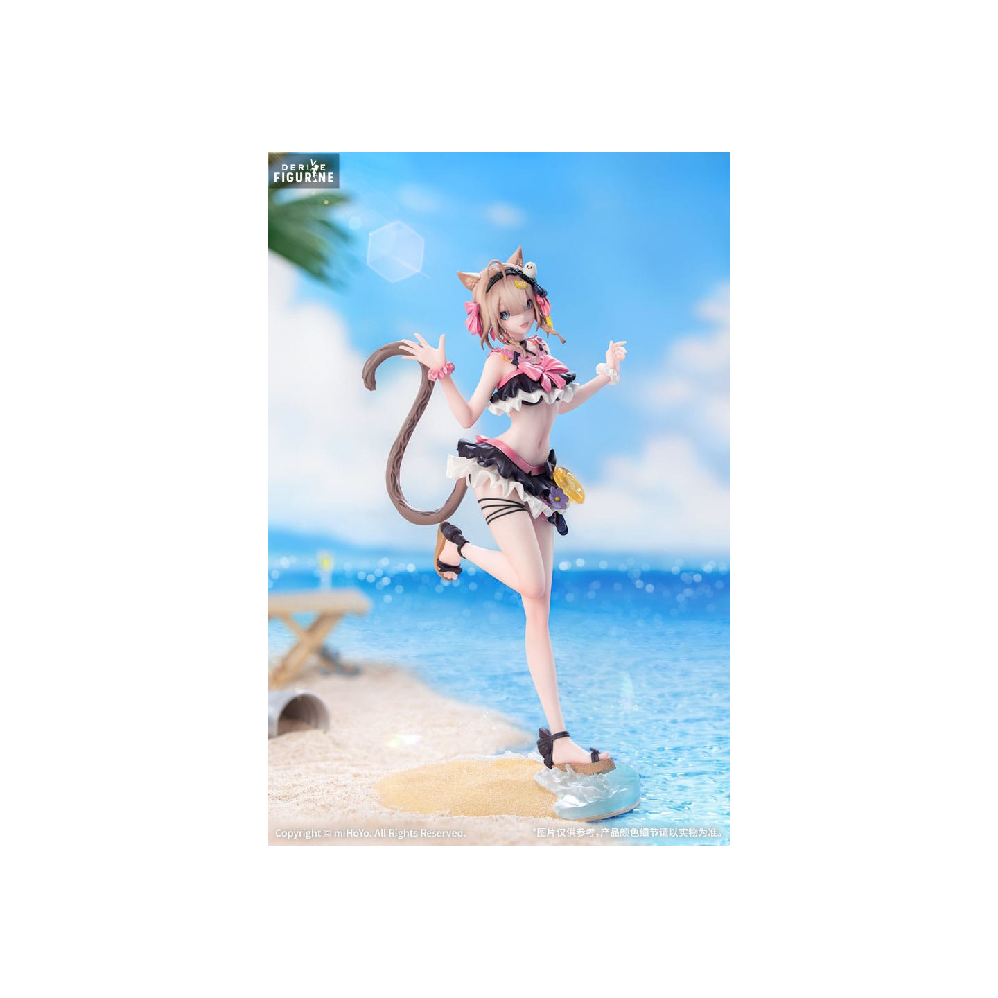 Set on a beach-themed base with a translucent wave, this figure beautifully captures a summer atmosphere. Produced by Myethos, this collectible is made of PVC and stands approximately 21 centimeters tall, at a 1/8 scale. It belongs to the Gift+ collection, renowned for its high-quality craftsmanship and meticulous finishing touches. This figure is a must-have for any Honkai Impact 3rd fan looking to add a touch of summer and feline charm to their collection.
