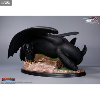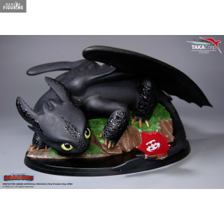 The main character of the Dragons movie story is Toothless, a cute little black dragon with beautiful green eyes. Taka brings him to life here with this really too cute realization where he is lying.