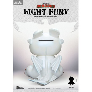 Official piggy bank figure of Light Fury in vinyl which measures approximately 35 centimeters. The manufacturer is Beast Kingdom.