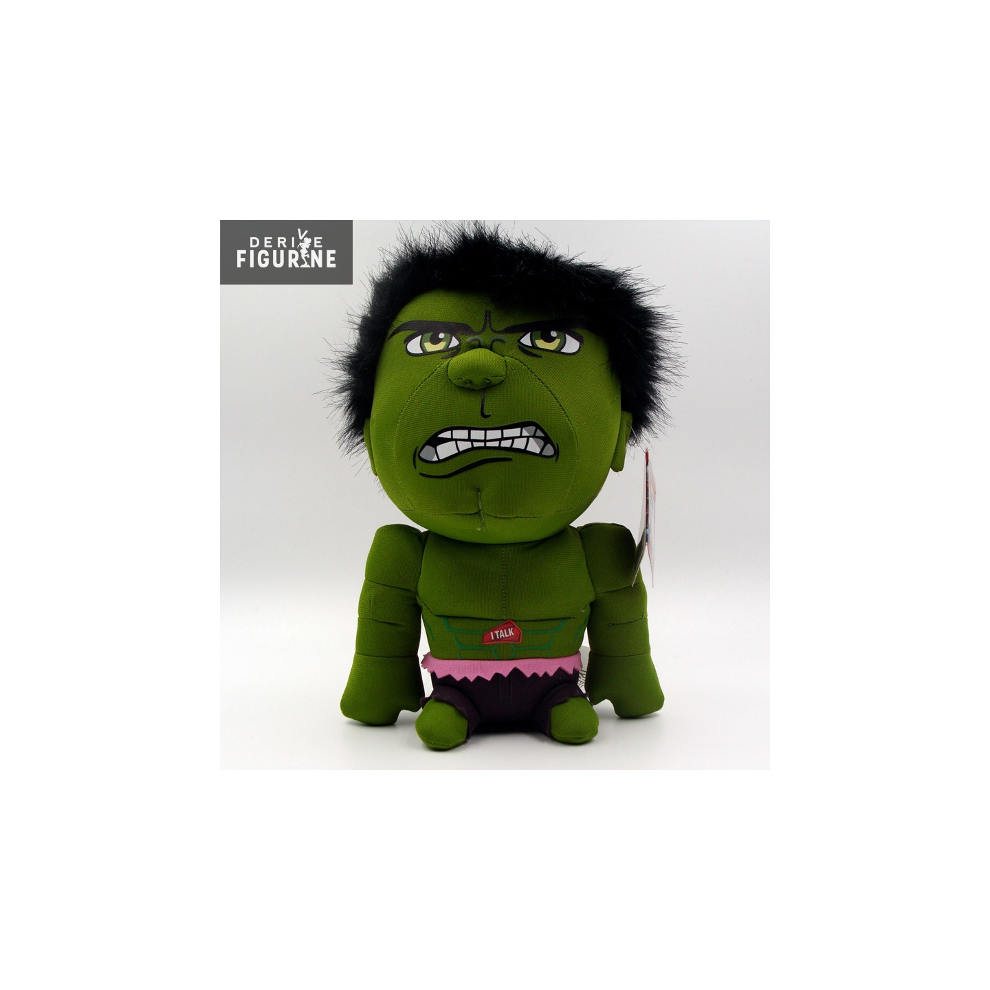 Our green giant, Hulk can say 4 phrases in his talking fluffy version. His snarling face does not make him want to bother him. Warn you if you disturb it.