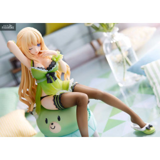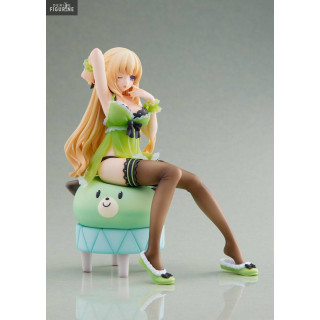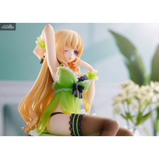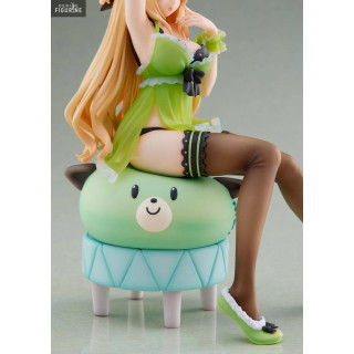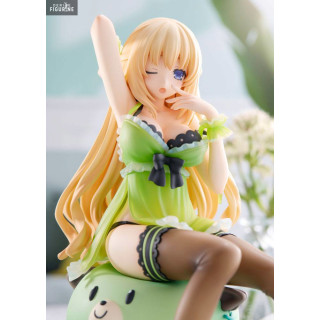 Vert is one of the young women who inhabit the world of Gamindustri and they can be seen fighting a sort of console war. You will certainly have understood it but Vert is the one that represents the nation of Leanbox, which you could recognize as Xbox and therefore Microsoft. She really likes online games, and considering how difficult her waking up looks, we can imagine that she spent the night on it. Finally, in addition to a very sexy babydoll, you can see a green dogoo under her.
