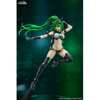 Made from PVC, the figure stands approximately 38 cm tall at 1/7 scale. The finishes combine metallic shine with textured matte. Electronic detailing is crisp, articulation clean, and the dynamic hair flow boosts the sense of speed. A standout piece for fans of Neptunia and high-impact mecha designs.