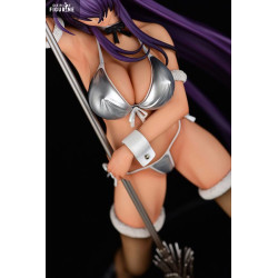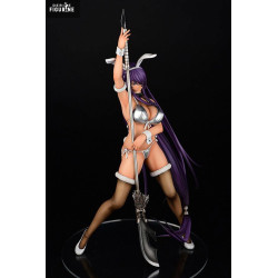 Standing approximately 33 cm tall at 1/6 scale, the PVC figure boasts refined contrasts between glossy costume surfaces and the matte texture of the stockings. Her curves are sculpted with precision, and the bold pose paired with the large weapon makes for a striking display piece.