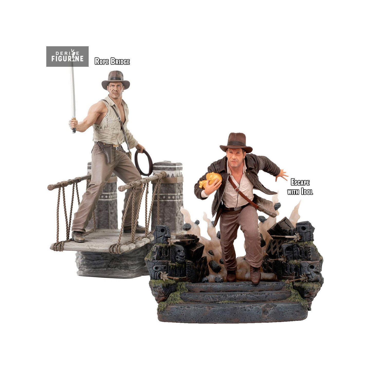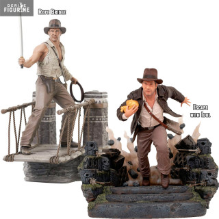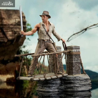 Official Indiana Jones figure of your choice between Rope Bridge (~ 28 cm) or Escape with Idol (~ 25 cm) in PVC. It is from the Gallery collection. The manufacturer is Diamond Select Toys.