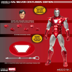 The Silver Centurion is one of the many Tony Stark armors you can see in comics issue 200, where he fights Obadiah. Basically, it was intended to serve James Rhodes but things have changed a bit. The fact that gold was replaced by silver thus earned him the nickname of Silver Centurion. So you can admire it here and give it several poses with its interchangeable parts and accessories, showing it in full attack. In addition, you also have his heart that lights up.