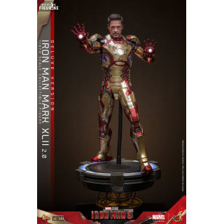 Official figure of Iron Man Mark XLII (2.0), Deluxe which measures approximately 32 centimeters high, scale 1/6. It is from the Movie Masterpiece collection. The manufacturer is Hot Toys.