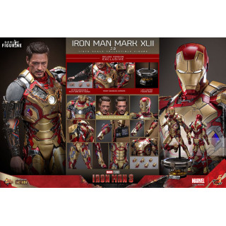 Iron Man, Tony Stark's alter ego, is one of the most iconic superheroes in the Marvel universe. Known for his intelligence, charisma and advanced technological arsenal, Tony Stark designed the Mark XLII armor with innovative features and a sophisticated design. Appearing in the film "Iron Man 3", this armor is famous for its ability to disassemble and reassemble around its wearer, offering unparalleled flexibility and power.