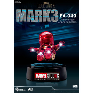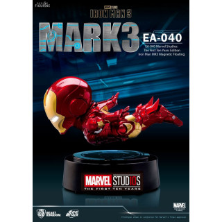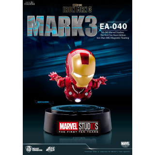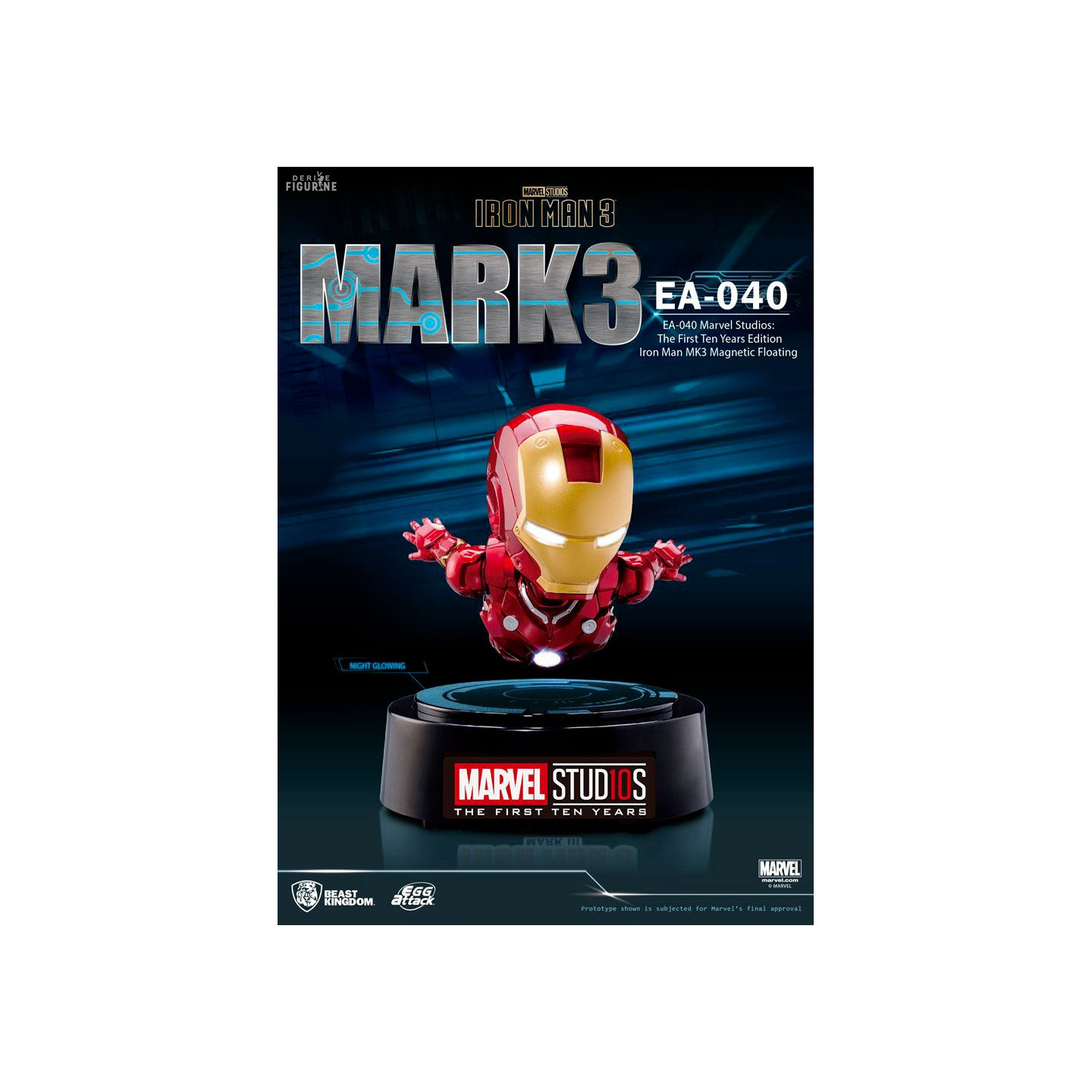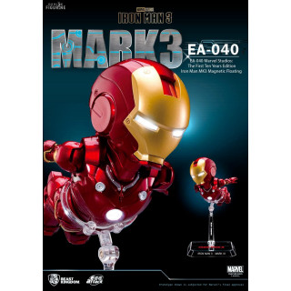 Official figure of Iron Man Mark III The First Ten Years Edition in PVC/Metal which measures approximately 16 x 9 x 9 centimeters. It is from the Egg Attack collection. The manufacturer is Beast Kingdom.