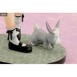 It is not always easy to navigate because Syaro Kirima has several names depending on her origin and can also be called Sharo. The funny thing about her is that her mood changes depending on the variety of coffee she is drinking. In any case, this gothic lolita look really suits her and even if she is rather afraid of rabbits, a little gray accompanies her.