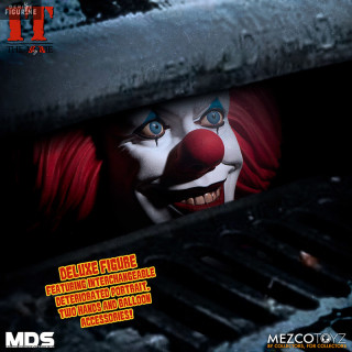 The clown from the horror film ÇA in its 1990 version arrives in Mezco's MDS collection to the delight of all fans. So here is Pennywise and it comes with accessories such as balloons, a hand and another scary face!