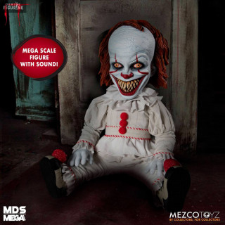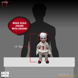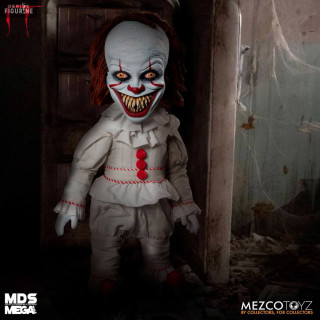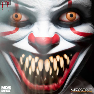 Official figure of Sinister Pennywise which measures approximately 38 centimeters high. It is from the Mezco Designer Series (MDS) collection. The manufacturer is Mezco Toys.