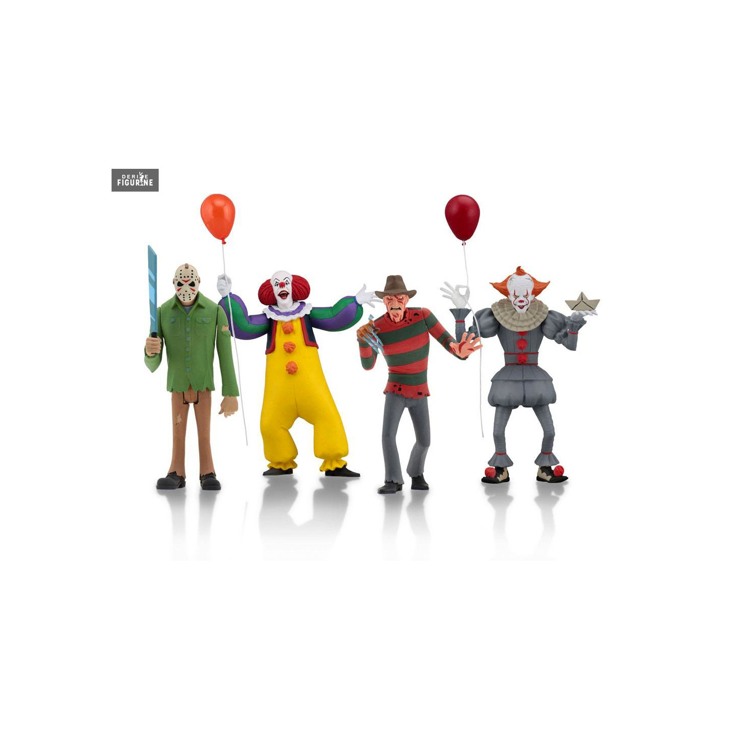 Official figures of Pennywise (1990 and 2017), Jason Voorhees and Freddy Krueger which measures about 15 centimeters high. The manufacturer is NECA.