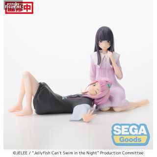 Kiui Watase is a lovable and energetic character from the series "Jellyfish Can't Swim in the Night". She is known for her cheerful nature and free spirit, traits which are faithfully depicted in this figurine. Kiui's relaxed pose, reclining with a playful smile and a wink, perfectly reflects her laid-back and cheerful attitude.