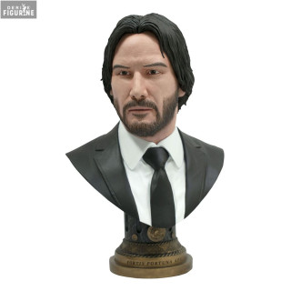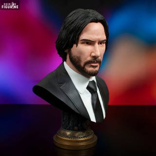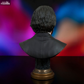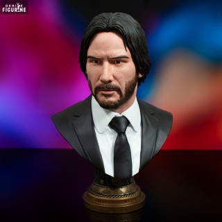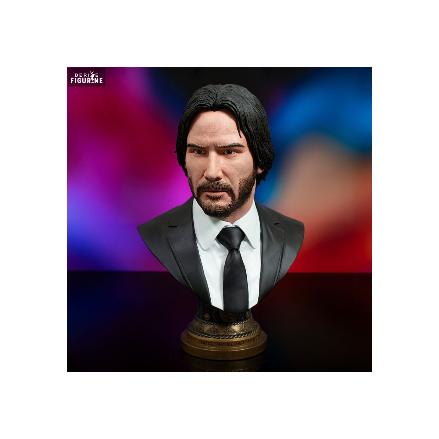 Official bust of John Wick in resin which measures approximately 25 centimeters high, scale 1/2. It is from the Legends in 3D collection. The manufacturer is Diamond Select.