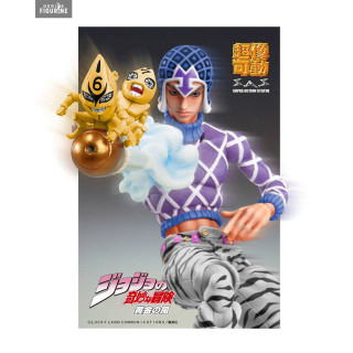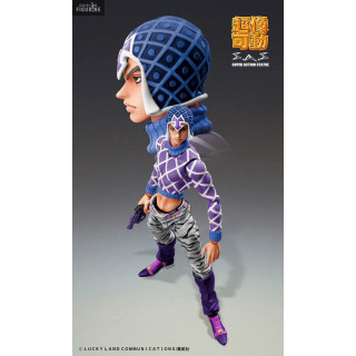 Official figure of Guido Mista and Sex Pistols which measures approximately 15 centimeters high. It is from the Super Action Chozokado collection. The manufacturer is Medicos Entertainment.