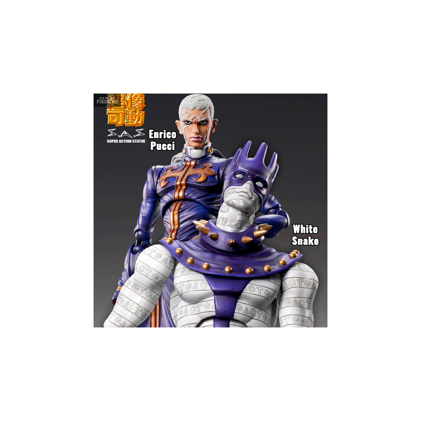 Official figure of your choice of Enrico Pucci or White Snake about 16 centimeters high. which measures approximately 14 centimeters high. It is from the Super Action Chozokado collection. The manufacturer is Medicos Entertainment.