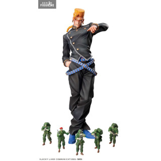 JoJo's Bizarre Adventure and its part 4 Diamond is unbreakable have among the antagonists, the great and impressive Keicho Nijimura who uses the BAD COMPANY stand, here he lands in the Statue Legend collection accompanied by his army. He's a ruthless character and seems to have no feelings for his brother, he will be proven otherwise at some point and so this figure is a credit to the Bad Company Stand User.