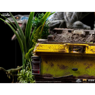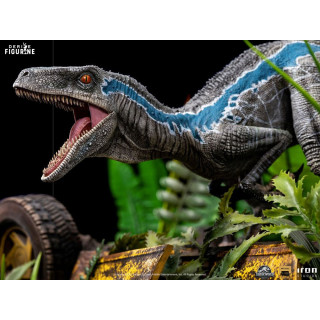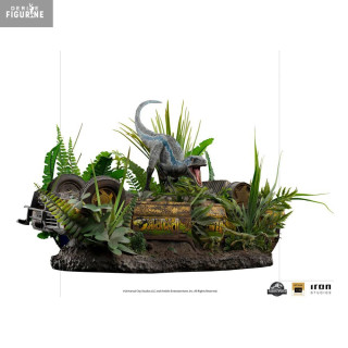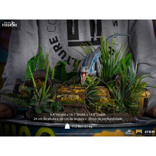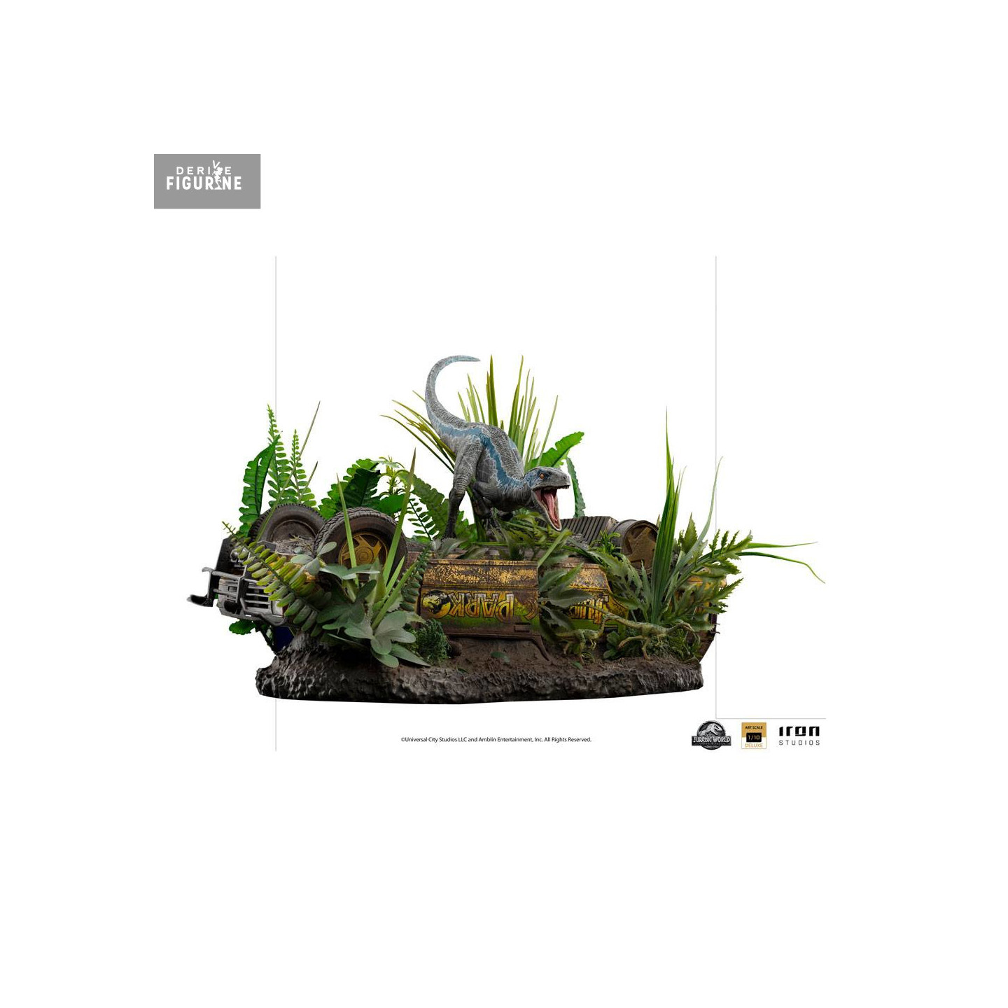 Forget basic figures—this is Blue in full cinematic glory. The Deluxe Edition by Iron Studios brings her into a fully immersive 1/10 scale diorama pulled straight from the wild heart of Jurassic World. We’re talking overgrown jungle, wrecked vehicles, twisted metal—it’s not just a figure, it’s a full-on scene.