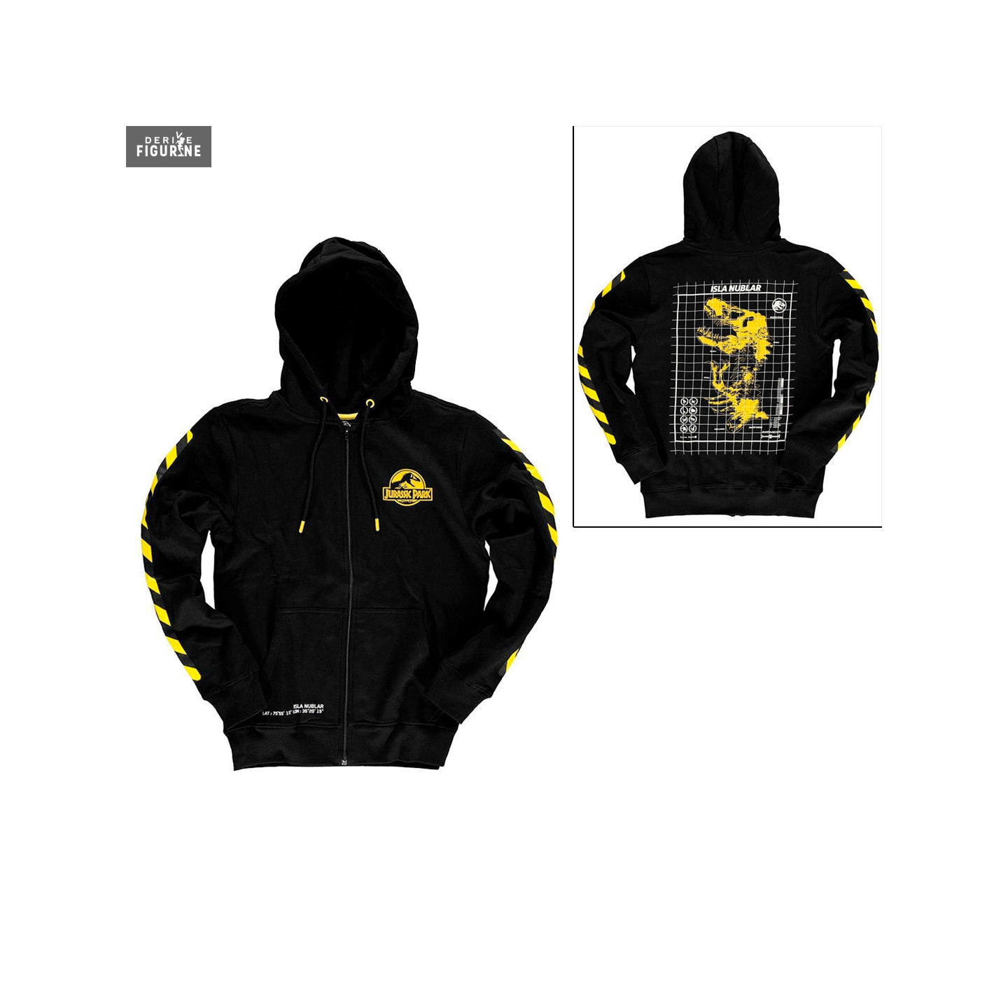If you love dinosaurs, you must have watched every episode of Jurassic Park. If so, you will surely want this zipped hooded jacket. At the front you have the logo of the film and at the back a T-Rex with a kind of technical sheet as one could find on Isla Nublar, the island having hosted the park.