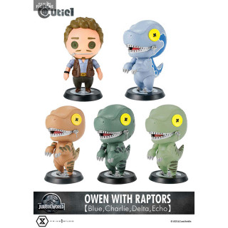 Official figures of Owen and 4 Raptors in PVC measuring approximately 12 centimeters high. They come from the Cutie1 collection. The manufacturer is Prime 1 Studio.