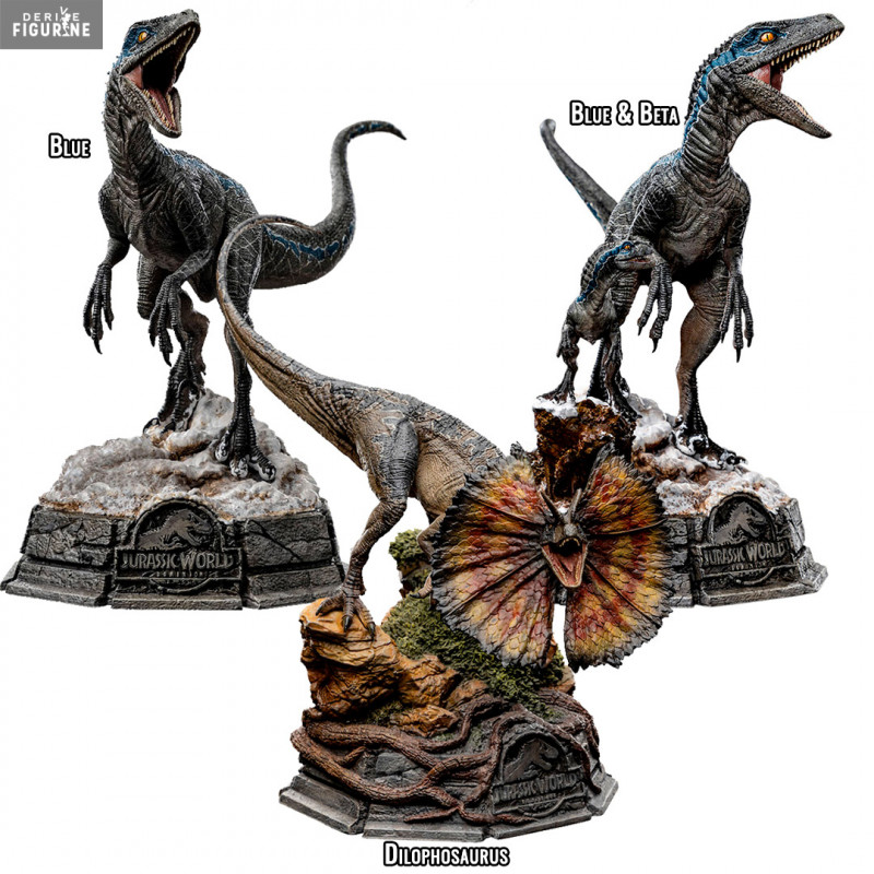 Official figure of your choice between Blue (~ 19 x 18 x 28 cm), Blue & Beta (~ 13 x 12 x 20 cm) or Dilophosaurus (~ 20 x 19 x 28 cm) in resin, scale 1/10. It comes from the Art Scale collection. The manufacturer is Iron Studios.