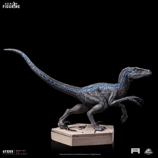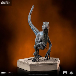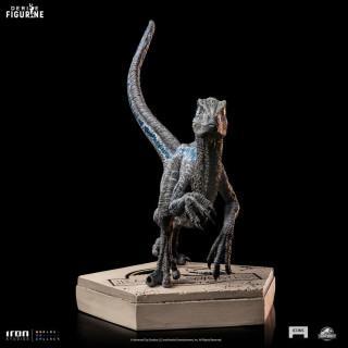 Official figure of Velociraptor Blue in resin which measures approximately 9 x 12 x 10 centimeters. It is from the Icons collection. The manufacturer is Iron Studios.