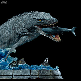 Official figure of Mosasaurus in resin which measures approximately 16 centimeters high. It is from the Icons collection. The manufacturer is Iron Studios.