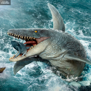 The Mosasaurus is not really a dinosaur, since it was actually part of the squamate race which is a kind of reptile. On the other hand, when you see him gobble up a shark as if it were a simple small fish, it's not so bad that the only places to still see him are this figurine or the park of Jurassic World.
