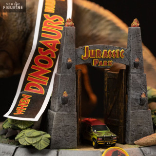 Get ready to relive thrilling moments from the Jurassic Park movie with this incredible T-Rex Illusion Deluxe figure from Iron Studios.