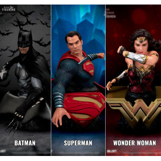 The Justice League has just reformed before your eyes because you have the opportunity to offer a bust of the three main heroes. There is the dark Batman equipped with his Batarang, Superman and his superhuman strength and finally the no less fighter Wonder Woman.