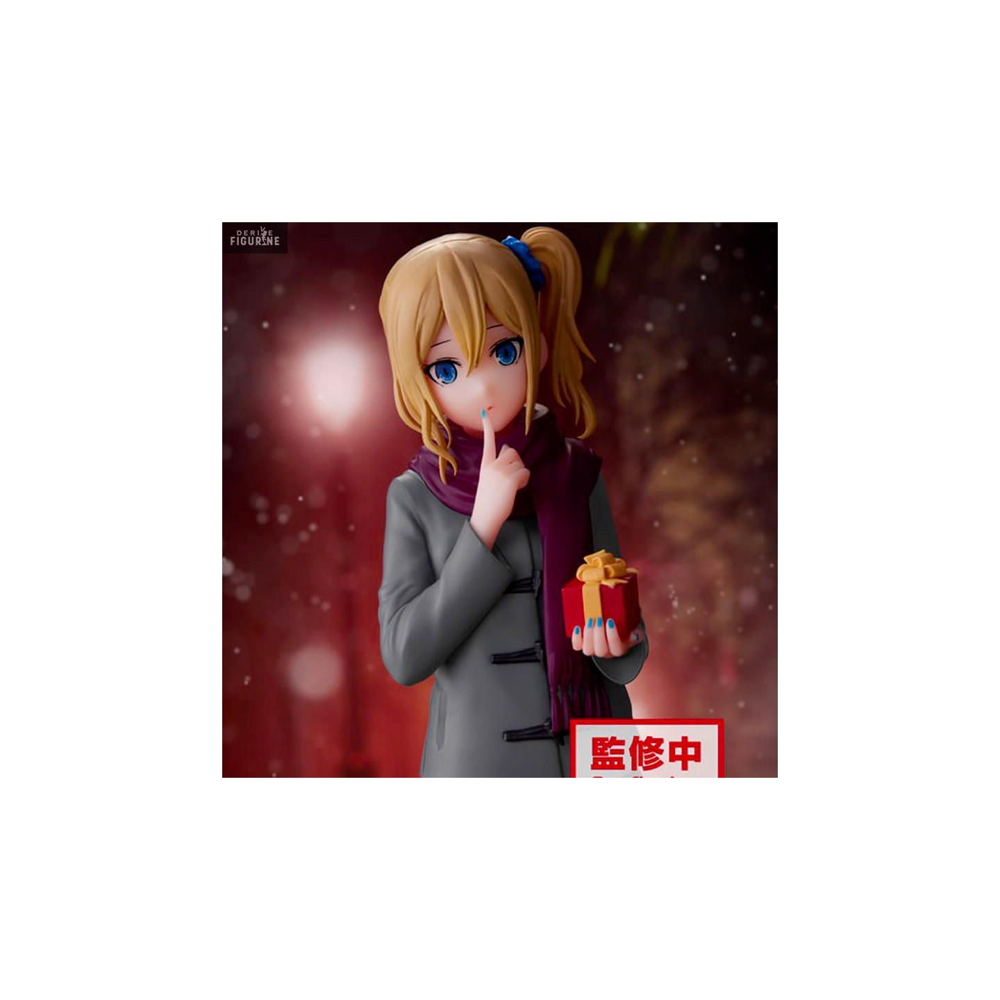 Aï Hayasaka is one of the protagonists of the Kaguya-sama: Love Is War series. She's a young third-year student. She possesses multiple personalities which she can quickly change to deal with situations or scenarios that come her way. Although she has this particular aspect, she is still a nice girl. She also happens to change her outfit very regularly according to her personalities, and she is presented here in a school uniform outfit with a gray jacket, a black skirt, black socks and brown shoes. She also wears a long purple scarf around her neck. She stares straight ahead and holds a small gift in her hand. Who can she give it to?