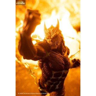 Every detail of this figure has been meticulously crafted to reflect the fury and strength of Kaiju No. 8. His posture, evoking a surge of power before assault, is energized by bursts of electric blue bio-energy that appear to erupt from his body. The varied textures faithfully reproduce the hardened skin and bony shells that characterize this creature, while the translucent material finishes perfectly imitate the flow of its destructive power.