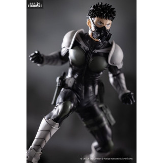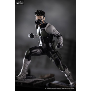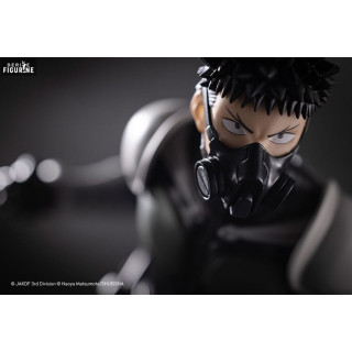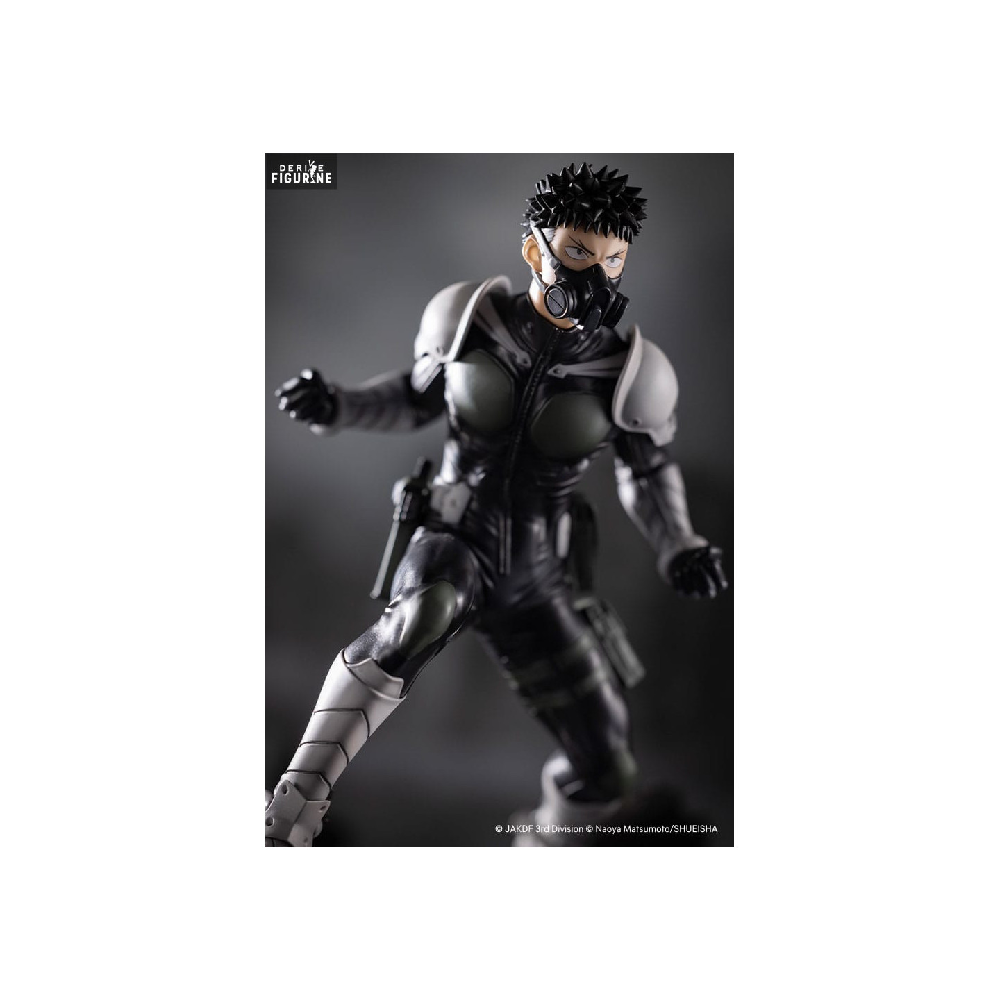 His concentrated features, accentuated by the combat mask, convey all the intensity of his courage and resolution. The shades and shadows on his uniform give a sense of movement and depth, while the base evokes a terrain devastated by combat, reinforcing the dramatic atmosphere of the series.